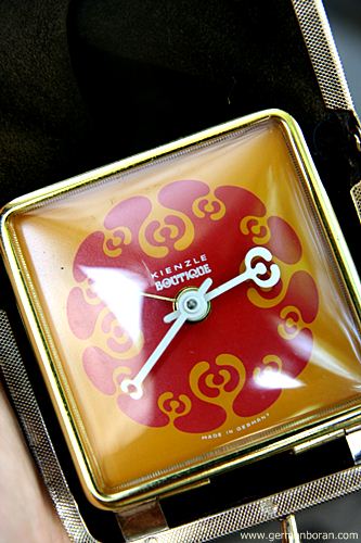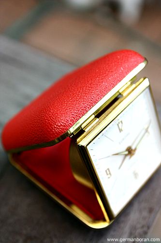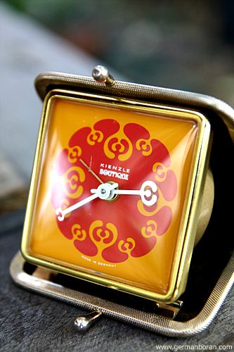 รหัส: B7_44 ข้อมูล: นาฬิกาปลุกตลับแป้ง(Travel Alarm Clock) เยอรมันโบราณ แบบไขลาน ยี่ห้อ Kienzle รุ่น BOUTIQUE ตลับกำมะหยี่ทรงกระเป๋าสตางค์ ดีไซด์โคตะระ ล้ำยุค 70's  8)