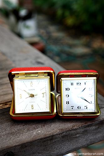 รหัส: B6_53 ข้อมูล: นาฬิกาปลุกตลับแป้ง(Travel Alarm Clock) เยอรมันโบราณ แบบไขลาน ยี่ห้อ EUROPA