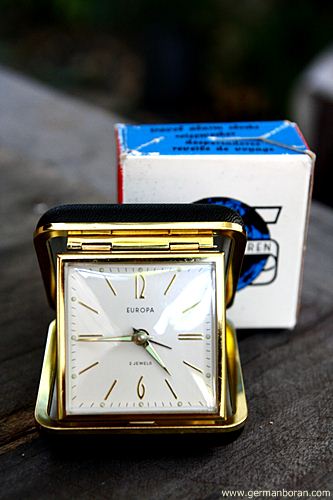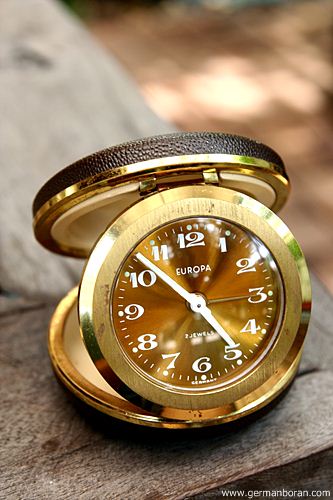 รหัส: B7_1 ข้อมูล: นาฬิกาปลุกตลับแป้ง(Travel Alarm Clock) เยอรมันโบราณ แบบไขลาน ยี่ห้อ EUROPA เก่าเก็บ พร้อมกล่องแท้ๆ เหมาะสำหรับฝากเพื่อนหรือผู้ใหญ่ที่เคารพครับ  ;D