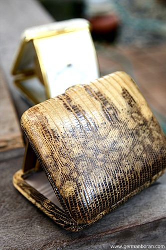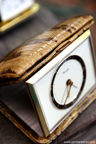 รหัส: B6_58 ข้อมูล: นาฬิกาปลุกตลับแป้ง(Travel Alarm Clock) เยอรมันโบราณ แบบไขลาน ยี่ห้อ Kienzle ตลับหนังลายหนังงู สวยสุดยอดและหายากครับเรือนนี้  ;D