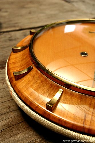รหัส: C5_31 ข้อมูล: นาฬิกาแขวนหัวเรือเยอรมันโบราณ ตัวเรือนยี่ห้อ FHS-Franz Hermle & Sons สองลาน ตีติ๊งหน่องใสๆ สามค้อนสามแส้ ขนาด 20x20cm. สวยๆ จ้า  ;D