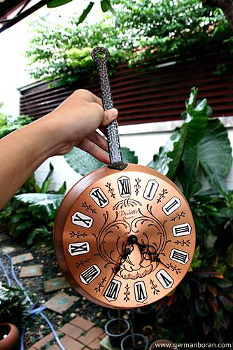 รหัส: C5_28 ข้อมูล: นาฬิกาแขวนโบราณ(Wall Clock) ขนาดหน้าจอ 22x22cm. ความยาวรวมที่แขวน 42cm. ยี่ห้อ Vedette สัญชาติฝรั่งเศส นานๆ จะเจอรุ่นนี้ทีนะครับส่วนมากของ Vedette จะทำสามลานซะเยอะ ตัวเรือนทองแดงหน้าปัดแซบหลายๆๆ เด้อ  ;D