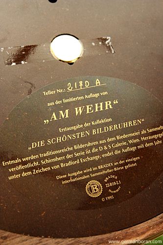 รหัส: C4_71 ข้อมูล: นาฬิกาแขวนผนังเยอรมันโบราณ ขนาด กxส(28x22cm.) นาฬิการะบบ Quartz ขนาด 2x2cm. ตัวเรือนไม้หน้าปัดรูปพิมพ์ "Am Wehr - ณ เขื่อน" ผลิตมาจำกัดจำนวนในปี 1995 ในชุดซีรีย์ "Die schönsten Bilderuhren - นาฬิการูปภาพที่สวยที่สุด" แขวนแต่งบ้านสวยๆ น่ามีเก็บไว้มากๆ ครับ  ;D