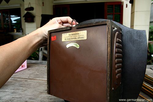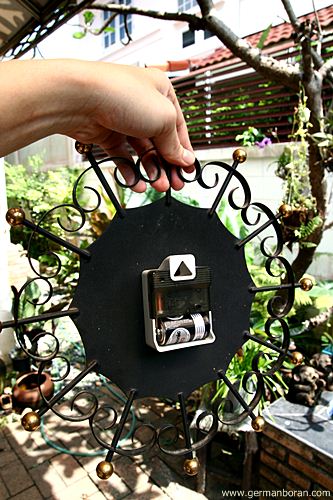 รหัส: B9_37 ข้อมูล: นาฬิกาแขวนเยอรมันโบราณ ขนาด 28x32cm. ตัวเรือนงานทำมือ(Handarbeit)ดีบุก เครื่อง Quartz รุ่นเก๋า มีตีกระดิ่งหนึ่งครั้งที่เลข 12 พร้อมตุ้มแกว่งลายคุณป้าหน้าโบราณๆ ลูกตุ้มสองข้างเป็นตุ้มหลอกนะค้าบบบบบ สวยๆ แปลกๆ อีกเรือนนึงครับ ;D