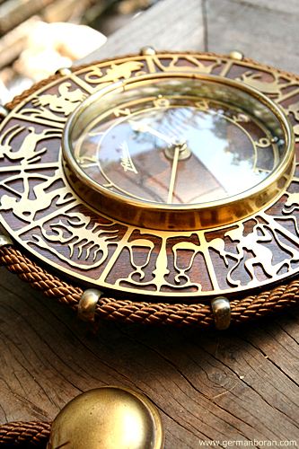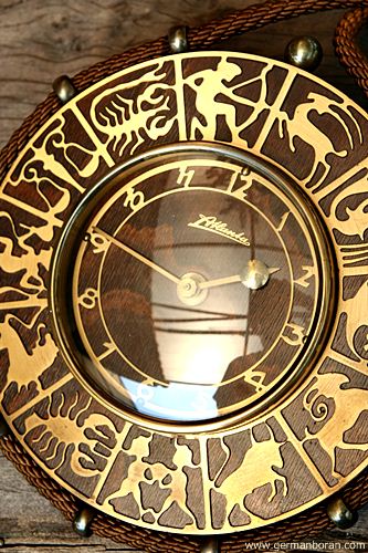 รหัส: C1_21 ข้อมูล: นาฬิกาแขวนหัวเรือเยอรมันโบราณ ยี่ห้อ Atlanta ขนาด 22x22cm. ลานเดียว(ใบ้) ตัวเรือนไม้ตกแต่งด้วยทองเหลือง 12 ราศี งามลึกล้ำค้าบบบบ  :-*