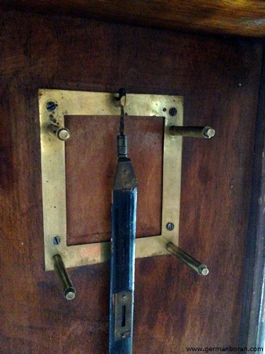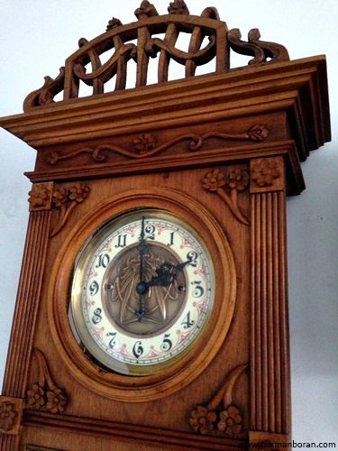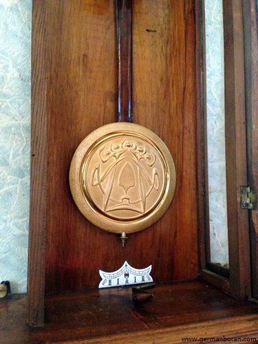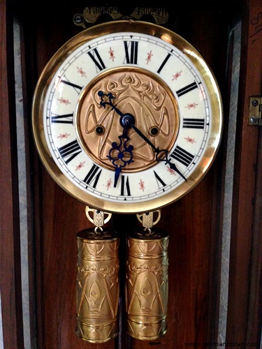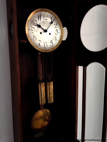 รหัส: D7_18 ข้อมูล: นาฬิกาแขวนไหมซอเยอรมันโบราณ สามถ่วง Gustav Becker(GB) ขนาด(กxสxล) 40x105x16cm. หน้าปัดหลุยส์กระเบื้องม่านแดงขนาด 7 นิ้ว 2 เลขตลก หน้าปัด ตุ้มแกว่งและลูกตุ้มถ่วงหลุยส์นูนลายปลาหมึกครบเซ็ต ตีสองค้อนสองแส้ตรงปั๊มตรา GB ตีทวนทุกๆ 15 นาที(Grande sonnerie: http://en.wikipedia.org/wiki/Grande_sonnerie) ตู้นอกสไตล์แบบ Art Nouveau(http://en.wikipedia.org/wiki/Art_Nouveau) ลายแกะสวยๆ กระจกเจียรงามๆ สภาพสมบูรณ์ นานๆ เจอไหมซอทรงนี้สักที หายากน่าสะสมค้าบบบ 8)