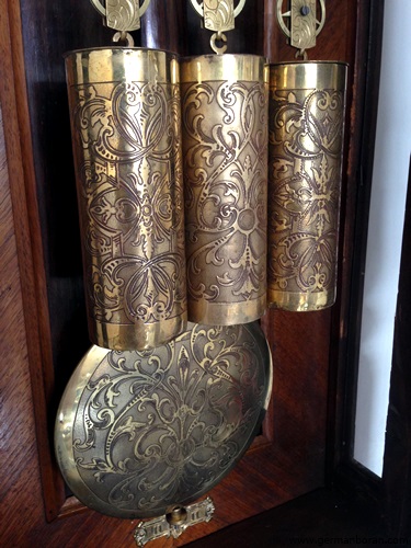 รหัส: D8_12 ข้อมูล: นาฬิกาแขวนไหมซอเยอรมันโบราณ สามถ่วง Unsigned ขนาด(กxสxล) 52x155x22cm. หน้าปัดโลหะกะไหล่เงินเลขล็อกเก็ตนูนขนาด 7 นิ้ว 2 หน้าปัด ตุ้มแกว่งและลูกตุ้มถ่วงหลุยส์ครบเซ็ต ตีแส้ขด ตู้นอกเสาลอย ลายแกะสวยๆ กระจังสิงห์เทพประทาน กุญแจล็อคโบราณ สภาพสมบูรณ์ หายากสมคุณค่าสุดๆ ครับ ^_^