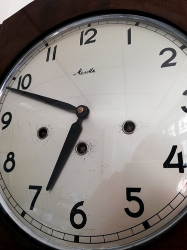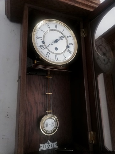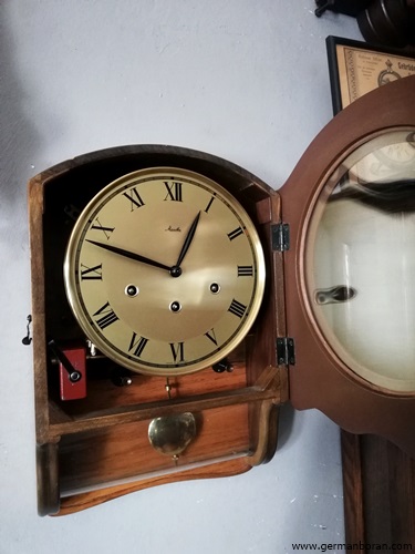 รหัส: D9_36 ข้อมูล: นาฬิกาแขวนผนังเยอรมันโบราณ ยี่ห้อ Hermle สามลาน ขนาด(กว้างxสูงxลึก) 30x55x16cm. ตีแปดแส้แปดค้อนตีเพลง Westminster กระจกเจียรสวยๆ ตัวเรือนลายไม้งามๆ พร้อมกุญแจแท้ๆ สภาพสมบูรณ์นิ้งๆ เหมือนออกห้างเลยครับ 8)