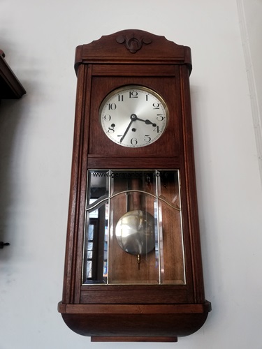 รหัส: D9_33 ข้อมูล: นาฬิกาแขวนสามลานเยอรมันโบราณ ยี่ห้อ Kienzle ขนาด(กxสxล) 38x86x22cm. ตัวเครื่องด้านหลังปั๊มโลโก้ติดปีกบิน แท่นแส้ปั๊มโลโก้เช่นกัน พร้อมกุญแจติดปีกออริจินัล ตุ้มทองเหลือง ตู้นอกเดิมๆ สวยๆ แปดแส้แปดค้อน ตีเพลงทำนอง Westminster เพราะๆ ปิดเสียงตีได้ กระจกเจียร 8 ชิ้นหนาๆ คุณภาพเต็มร้อย สภาพสมบูรณ์สุดๆ ครับ ^_^