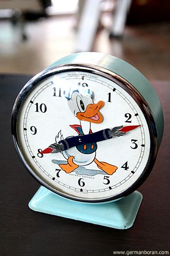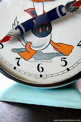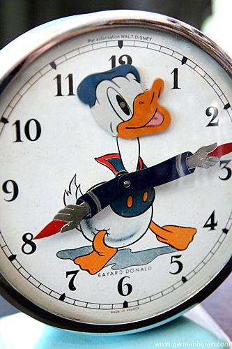 ข้อมูล: นาฬิกาปลุกไขลานโบราณ Made in France ยี่ห้อ BAYARD ขนาด 11x13cm. รุ่นพิเศษ DONALD DUCK หัวกระดุ๊กกระดิ๊กได้ แขนเป็นเข็มสั้นเข็มยาว หายากกกมากๆๆ ผมมีอยู่แค่เรือนนี้เรือนเดียวเท่านั้น ตัดใจอยู่นาน กลั้นใจเอามาสมนาคุณแฟนๆ เว็บครับพ้มมมม เสียดายยยยยยจั๊งงงงงงง T_____T