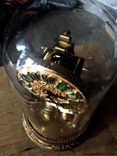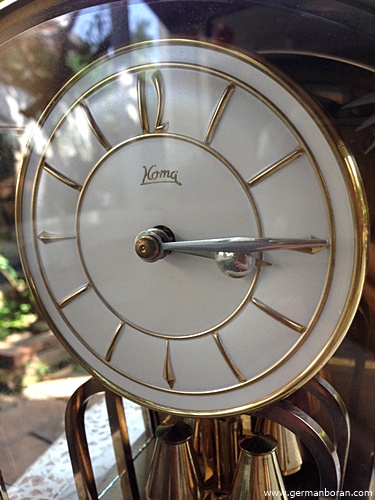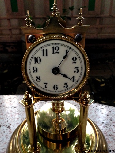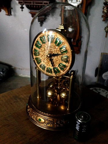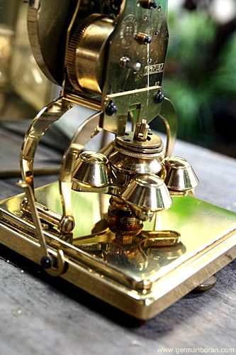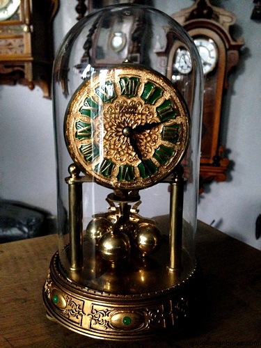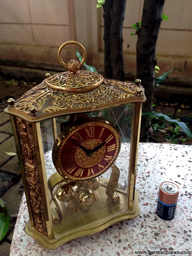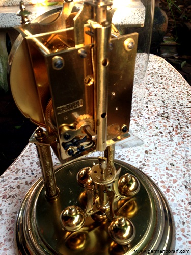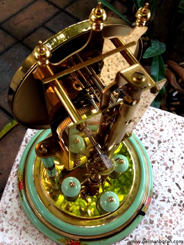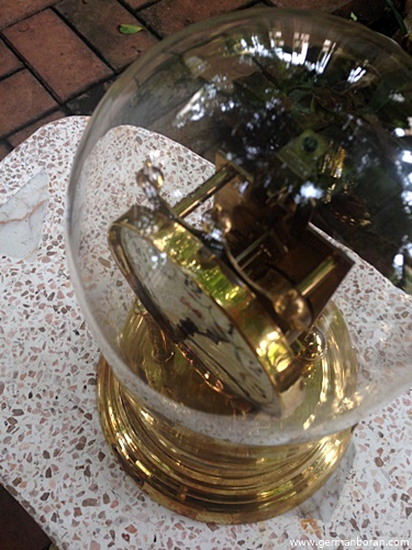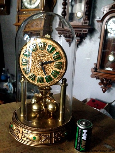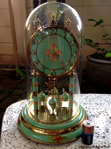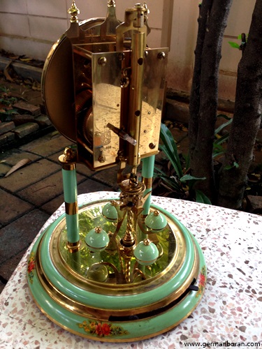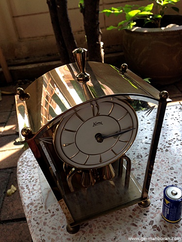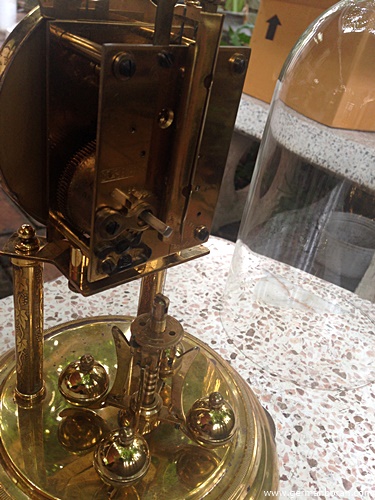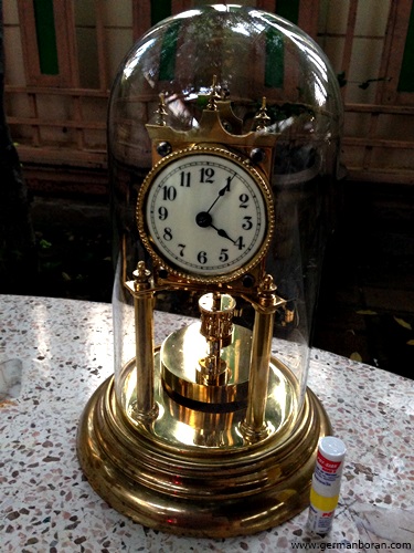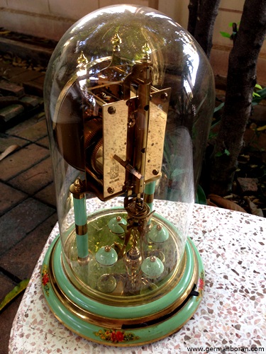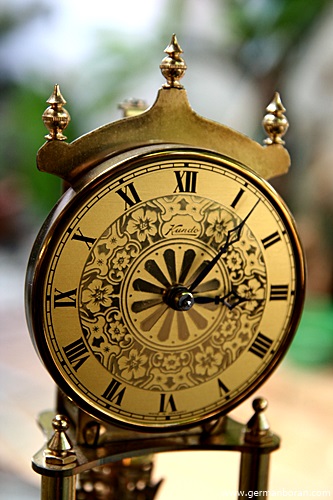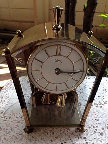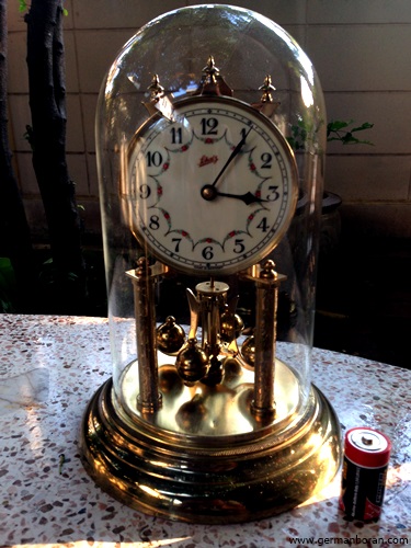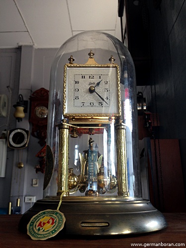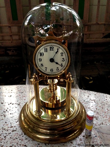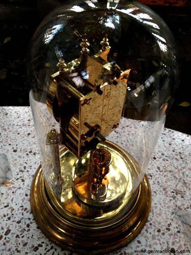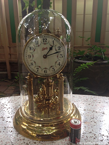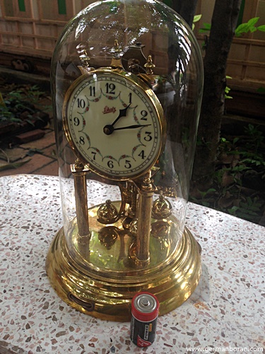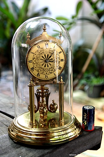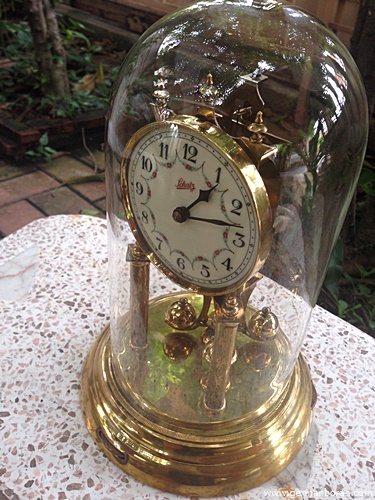 รหัส: D6_35 ข้อมูล: นาฬิกาตั้งโต๊ะไขลานเยอรมันโบราณ 400 วัน(Anniversary Clock) ยี่ห้อ Kern ขนาดสูงรวมครอบแก้วประมาณ 22cm. ตัวเรือนและหน้าปัดหลุยส์ๆ น่ารักสุดๆ ลูกตุ้มหมุนไปหมุนมา คลาสสิคมากๆ คร้าบบ  ;D