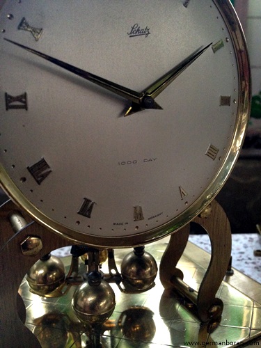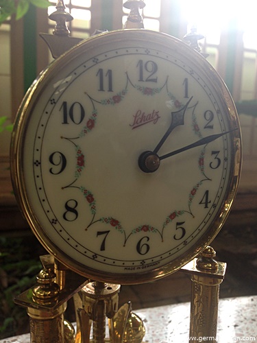รหัส: D5_0_59 ข้อมูล: นาฬิกาตั้งโต๊ะเยอรมันโบราณ 400 วัน(Anniversary Clock) ยี่ห้อ Schatz ไซส์ใหญ่ สูงประมาณ 30cm. หน้ากระเบื้อง สวยเรียบ ฐานทองเหลืองสุดคลาสสิค ยี่ห้อ Schatz ยอดนิยมคร้าบบบ 8)