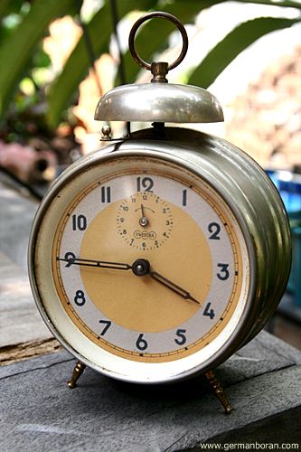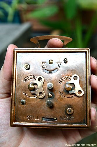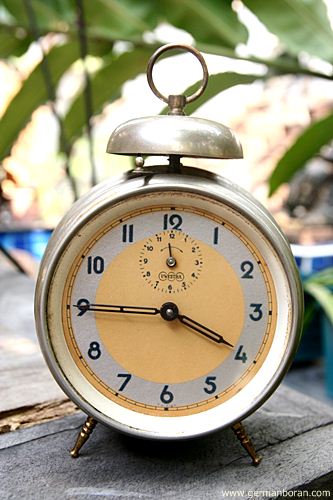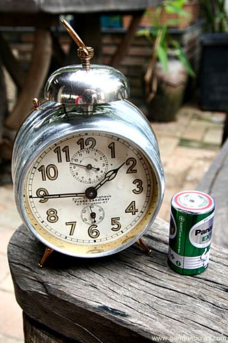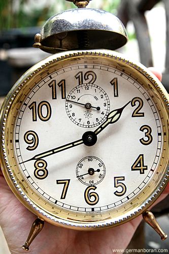 รหัส: C8_88 ข้อมูล: นาฬิกาปลุกไขลานเยอรมันโบราณ(German Alarm Clock) ยี่ห้อ UWESTRA ตีกระดิ่งบน หน้าปัดขนาด 10x10cm. ใช้งานได้ครบทุกฟังก์ชัน หน้าปัดสวยๆ จ้า  :-*