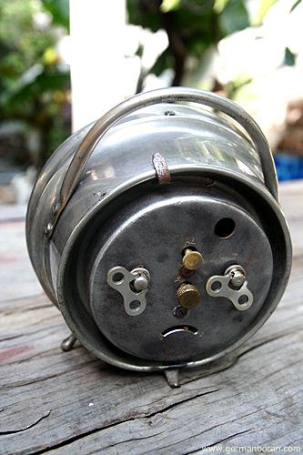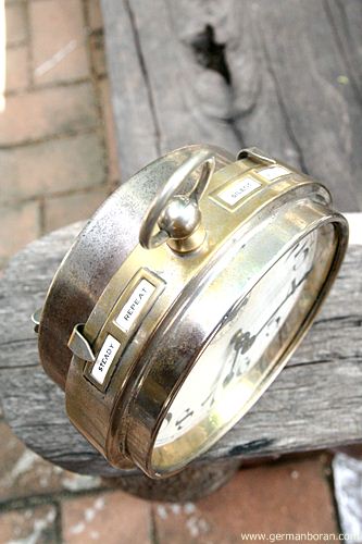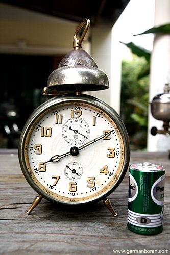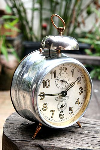 รหัส: C8_78 ข้อมูล: นาฬิกาปลุกไขลานเยอรมันโบราณ(German Antique Alarm Clock) ยุค 1900 ยี่ห้อ ศรไขว้(HAU-HAC) หน้าปัดขนาด 10x10cm. เรือนนี้พิเศษที่หน้าเพนส์สีเดิมๆ คลาสสิคๆ หายากน่าสะสมเป็นชุดหน้าสีของศรไขว้ครับ  ;D