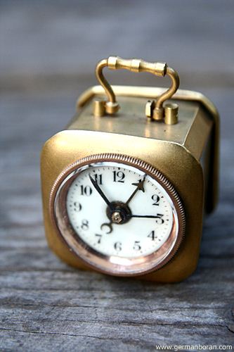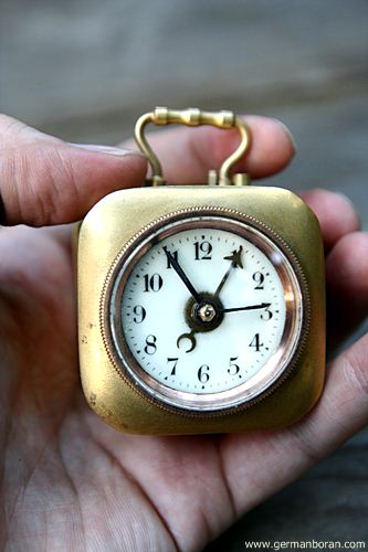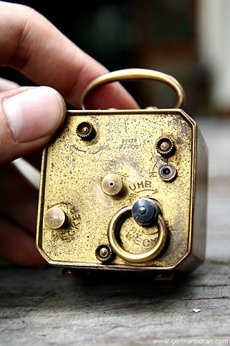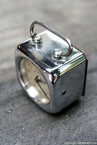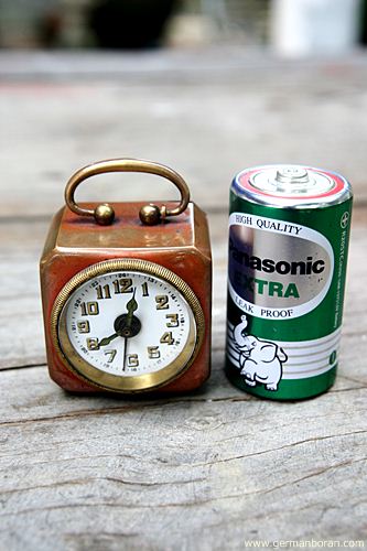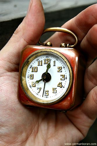 รหัส: C8_13 ข้อมูล: นาฬิกาปลุกเยอรมันโบราณ ยุคต้นศตวรรษ 1900 แบบไขลาน (ตามเข็มลานตี ทวนเข็มลานเดิน) ไซต์ซุปเปอร์จิ๋ว ขนาด 4x4cm. หน้ากระเบื้อง กลไกระบบหยุดปลุกเก๋ๆ หยุดเมื่อขยับหูหิ้วยกขึ้น สภาพจ๋วยๆ น่ารักๆ น่าสะสมคร้าบบบ  ;D