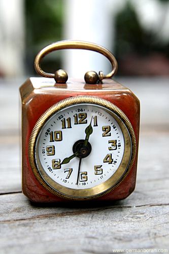 รหัส: C8_76 ข้อมูล: นาฬิกาปลุกเยอรมันโบราณ ยุคต้นศตวรรษ 1900 แบบไขลาน (ตามเข็มลานตี ทวนเข็มลานเดิน) ไซต์ซุปเปอร์จิ๋ว ขนาด 4x4cm. หน้ากระเบื้อง กลไกระบบหยุดปลุกเก๋ๆ หยุดเมื่อขยับหูหิ้วยกขึ้น สภาพกริ๊บๆ น่ารักๆ น่าสะสมคร้าบบบ  ;D