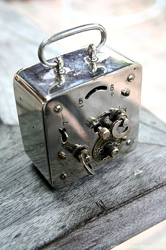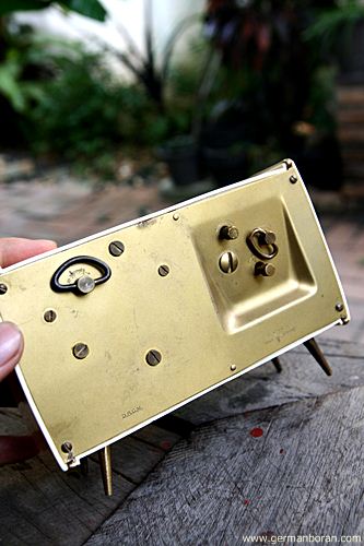 รหัส: D2_0_11 ข้อมูล: นาฬิกาปลุกไขลานเยอรมันโบราณ ยี่ห้อ Schmid รุ่น 7 Jewels เดิน 8 วัน ขนาดประมาณ 7x7cm. หลุยส์ๆ ตั้งแต่หัวจรดเท้า สภาพกริ๊บๆ หนักๆ ตันๆ หายากจ้าาาาา  ;D