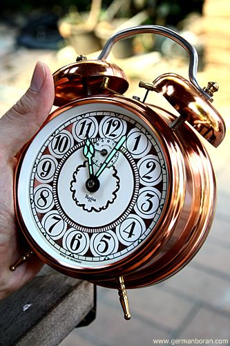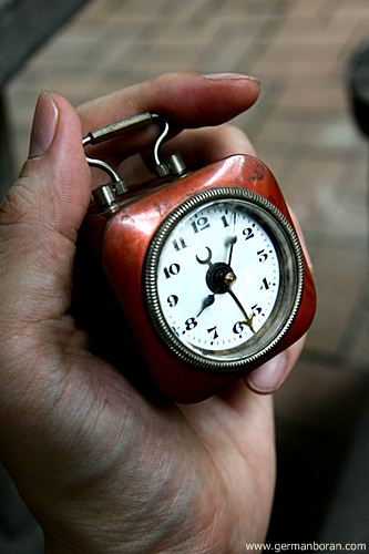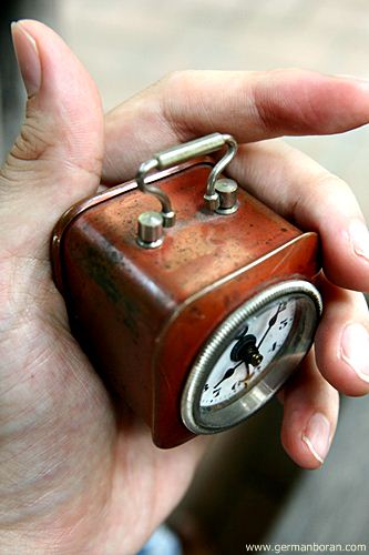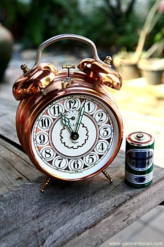 รหัส: D2_28 ข้อมูล: นาฬิกาปลุกเยอรมันโบราณ แบบไขลาน รุ่นช่วงปี 191x-2x ขนาดจิ๋วหลิว 4x4cm. หน้ากระเบื้อง ตัวเรือนสีทองแดง สภาพสวยๆ คลาสสิคๆ น่ารัก น่าสะสมสุดๆๆๆ ครับ  :-*