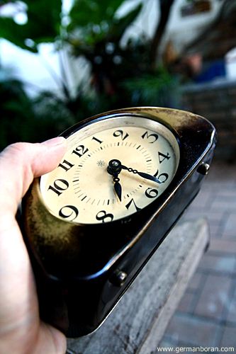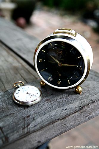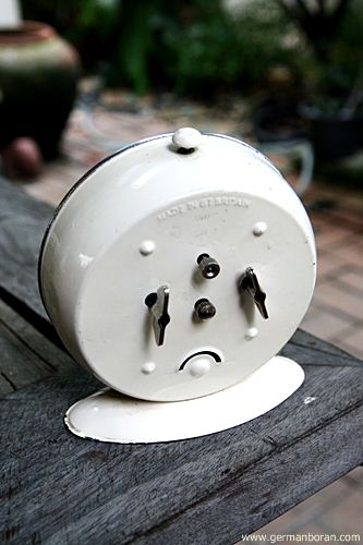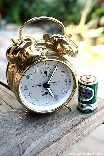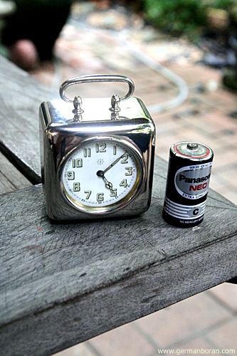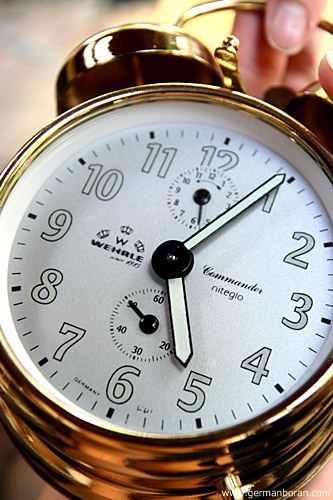 รหัส: D2_1_2 ข้อมูล: นาฬิกาปลุกไขลานเยอรมันโบราณ ยี่ห้อ Wehrle รุ่น Commander Niteglo ตีสองกระดิ่งบน ขนาด 12x12cm. หน้าปัดงามหลายๆ สภาพกริ๊บๆ น่าสะสมจ้า  ;D