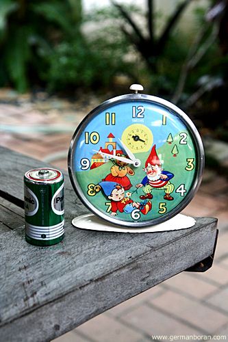 รหัส: D2_22 ข้อมูล: นาฬิกาปลุกไขลานโบราณจาก Great Britain ยี่ห้อ SMITHS หน้าปัดลายการ์ตูนสมัยนู้น 11x11cm. เด็กนอนหลับกระดิกหัวได้ตามเข็มวินาที คลาสสิคๆ น่าสะสมมากๆ ครับ  ;D