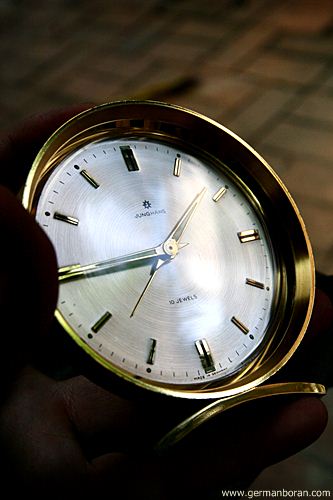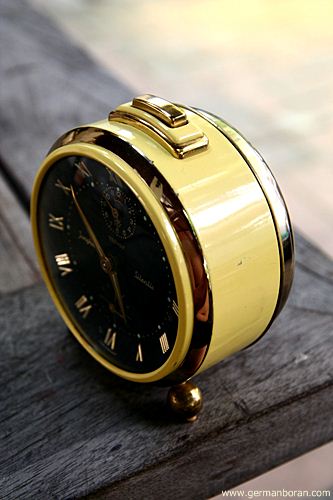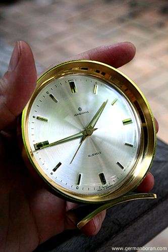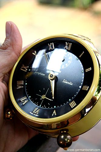รหัส: D3_13 ข้อมูล: นาฬิกาปลุกไขลานเยอรมันโบราณ ยี่ห้อ Junghans รุ่น Trivox silent-tic(เดินเงียบ) หน้าปัดและตัวเรือนสีทอง สภาพ No-Use ใครรักใครชอบจุงฮันรุ่นยอดนิยมนี้ต้องรับไว้สะสมให้ครบชุดครับ น่าเก็บมากกๆ จ้ะ  ;D