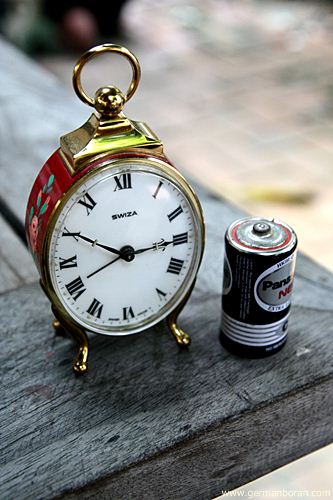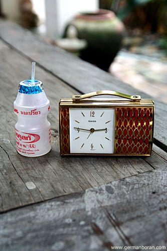 รหัส: D2_72 ข้อมูล: นาฬิกาปลุกไขลานโบราณ SWISS MADE ยี่ห้อ SWIZA หน้าปัดขนาด 6x7cm. ลายเพ้นส์มือสวยๆ หน้าปัดกระเบื้อง สภาพกริ๊บๆ หายากกกกจ้าาาา  ;D