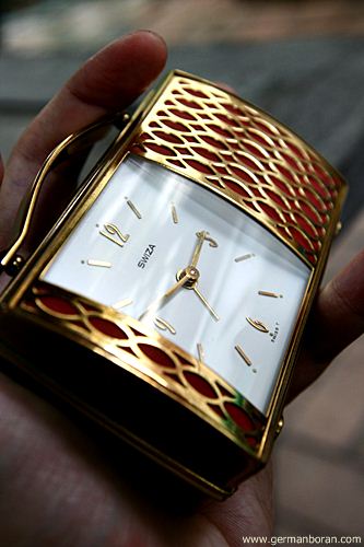 รหัส: D3_23 ข้อมูล: นาฬิกาปลุกไขลานโบราณ(Antique Alarm Clock) ยี่ห้อ SWIZA ขนาด 10x7cm. ตัวเรือนทองเหลืองทรงกระเป๋าหายาก แถมพิเศษปลุกเป็นเสียงกล่องดนตรีสุดคลาสสิค น่าเก็บมากๆ ครับเรือนนี้  :-*