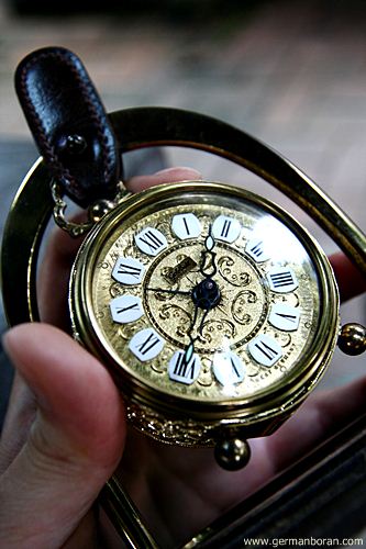 รหัส: D3_28 ข้อมูล: นาฬิกาปลุกไขลานเยอรมันโบราณ ยี่ห้อ Goldbühl จิ๋วหลิว แบบหลุยส์ๆ ขนาด 6x6cm. พร้อมชุดแขวนหนังเก๋ๆ สวยมากๆ จ้า  :-*