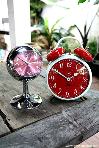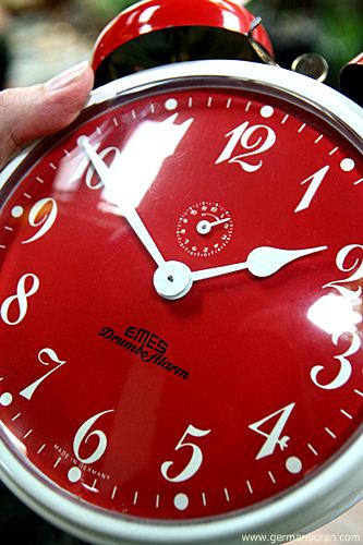 รหัส: D3_44 ข้อมูล: นาฬิกาปลุกไขลานเยอรมันโบราณ(Antique Alarm Clock) ยี่ห้อ EMES ไจแอนด์ ขนาดหน้าปัด 18x18cm. สีสันสดใส สไตล์เรโทร จะแขวนก็ได้จะตั้งก็ได้จ้าาา  :-*