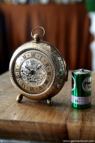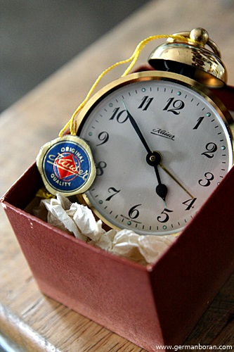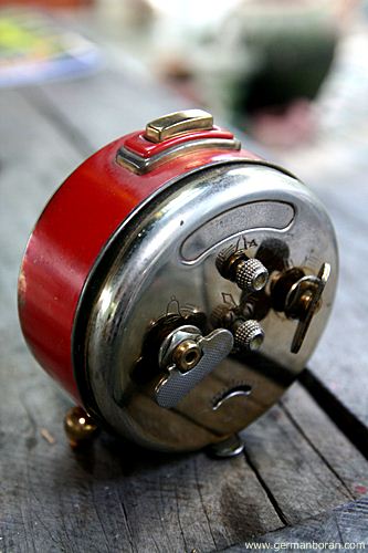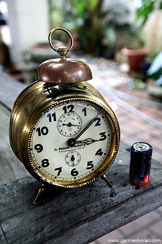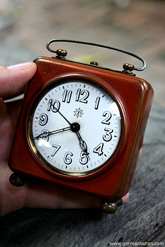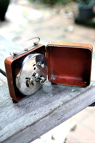 รหัส: D4_34 ข้อมูล: นาฬิกาปลุกไขลานเยอรมันโบราณ ยี่ห้อ Goldbühl หน้าปัดขนาด 8.5x8.5cm. หลุยส์หลุยส์ ซ้วยสวย จ้าาาา  :-*