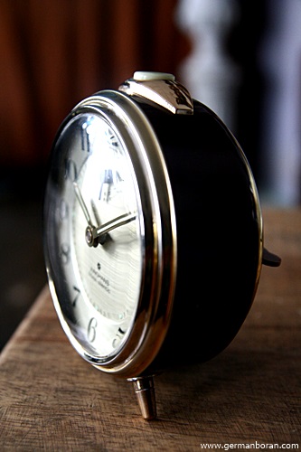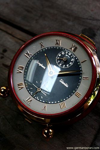 รหัส: D2_0_10 ข้อมูล: นาฬิกาปลุกไขลานเยอรมันโบราณ ยี่ห้อ Junghans รุ่น Trivox Silent-tic ขนาด 9x9cm. ปลุกเป็นเสต็ป(Trivox) เดินเงียบ(Silent-tic) เรือนอวบอ้วนขาแหนมตุ้มจิ๋ว มีไว้ใช้งานหรือเก็บสะสมเข้าตู้ได้เลยขอรับครับผม ซีรีย์นี้น่าเก็บมากๆ คร้าบบบ 8)