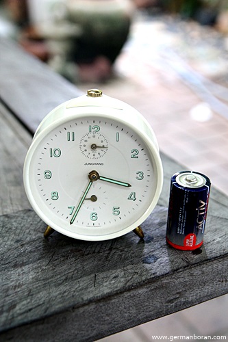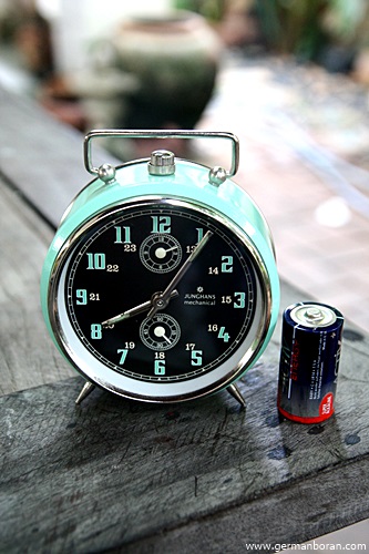 รหัส: D4_0_14 ข้อมูล: นาฬิกาปลุกไขลานเยอรมันโบราณ ยี่ห้อ Junghans ขนาด 9x9cm. สภาพกริ๊บๆ เข้าตู้สะสมได้เลยครับ  ;D