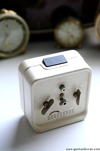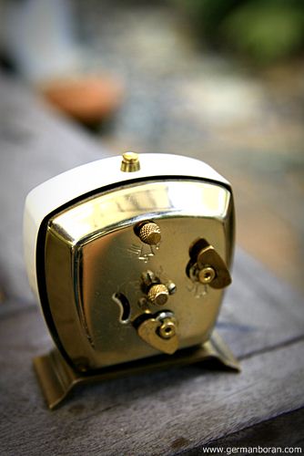 รหัส: A8_58 ข้อมูล: นาฬิกาปลุกไขลานเยอรมันโบราณ ยี่ห้อ Wehrle รุ่น GRATO ขนาด 10x10cm. ระบบ SoftiC&Duplex(เหมือน trivox-silentic ของจุงฮัน) เดินเงียบและปลุกเป็นเสต็ป แบ่งกันไปสะสมครับ  ;D