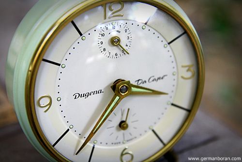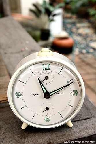 รหัส: B3_0_23 ข้อมูล: นาฬิกาปลุกไขลานเยอรมันโบราณ ยี่ห้อ Dugena รุ่น Kadett สามเข็ม พลายน้ำสว่างจ้า จ๋วยๆ คลาสสิคๆ น่าสะสม  :-*