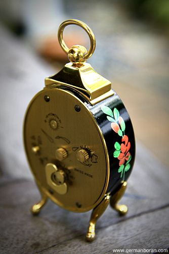 รหัส: B3_31 ข้อมูล: นาฬิกาปลุกไขลานเยอรมันโบราณ ยี่ห้อ Exclusiv หน้าปัดขนาด 6x6cm. ขาจรวด หลุยส์ทั้งกายหลุยส์ทั้งใจ สวยๆ ครับ  ;D