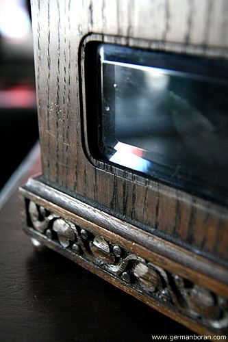 รหัส: C2_38 ข้อมูล: นาฬิกาปลุกไขลานเยอรมันโบราณ(German Antique Alarm Clock) ยุคช่วง 1900 ตัวเรือนขนาด(กว้างxสูงxหนา) 16x26x10cm. สำหรับเรือนนี้ผมคิดว่าเดิมเครื่องนาฬิกาคงเป็นแบบลูกตุ้มแกว่งธรรมดา แล้วถูกเปลี่ยนเป็นชุดเครื่องที่มีกลไกปลุกเป็นเสียงกล่องดนตรีนะครับ หน้าปัดกระเบื้องสามนิ้วสองเลขตลก เสียงปลุกกล่องดนตรีเพราะมากๆ จะเล่นเพลงจนหมดลานนะครับ ตัวเรือนลายไม้แกะสลักก็สวยๆ สำหรับพี่ๆ ที่สนใจนะคร้าบบบบบ ;D