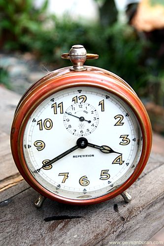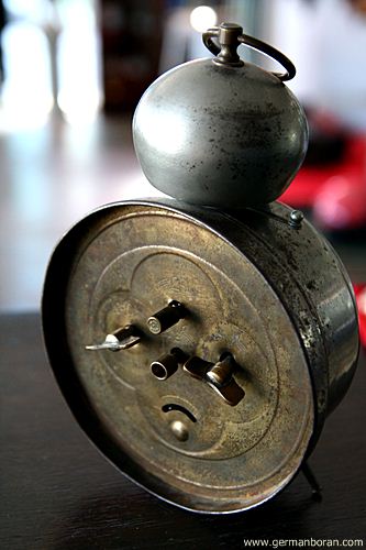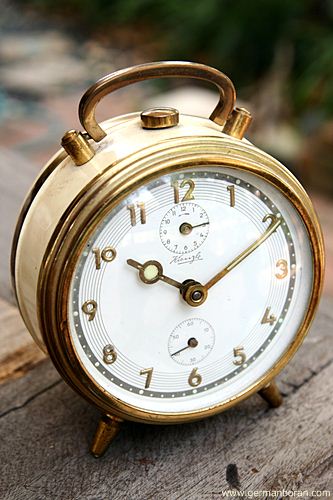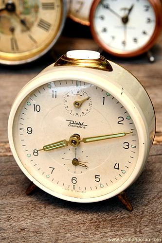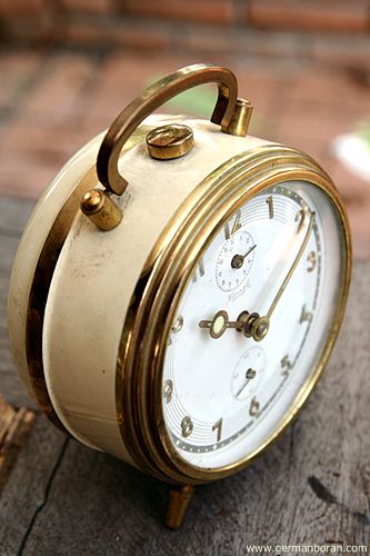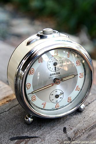 รหัส: C4_19 ข้อมูล: นาฬิกาปลุกเยอรมันโบราณ แบบไขลาน ยี่ห้อ ANKRA รุ่น PIANISSIMO เรือนอวบอ้วน สามเข็ม เก่าแก่รุ่นประมาณ 195x รุ่นนี้หายากกกกกมั่กๆ ครับ ผมเพิ่งเคยได้มาเป็นเรือนแรกครับ ;D