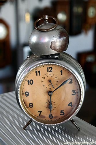 รหัส: C3_0_26 ข้อมูล: นาฬิกาปลุกไขลานเยอรมันโบราณ(German Antique Alarm Clock) ยุค 1900 ยี่ห้อ Junghans หน้าปัดขนาด 10x10cm. เรือนนี้พิเศษที่กระดิ่งคว่ำใบใหญ่ตีดังสนั่น สวย คลาสสิค น่าเก็บมากๆ คร้าบบบบ  ;D