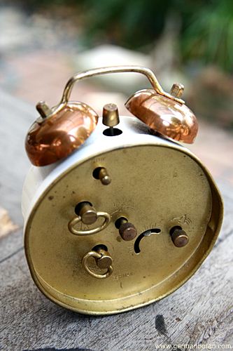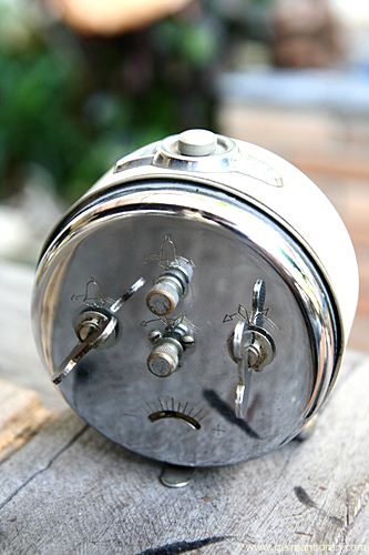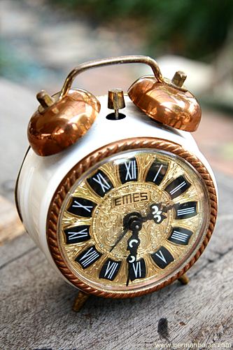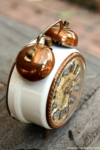 รหัส: C4_8 ข้อมูล: นาฬิกาปลุกไขลานเยอรมันโบราณ(German Alarm Clock) ยี่ห้อ EMES สองกระดิ่ง ไซส์เล็ก หลุยส์ๆ ขนาด 6x6cm. สภาพจ๋วยๆ จ้า  ;)