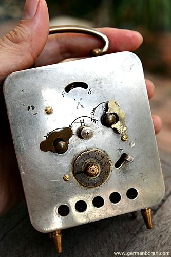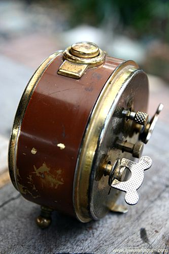รหัส: C4_4 ข้อมูล: นาฬิกาปลุกไขลานเยอรมันโบราณ ยี่ห้อ Schmid รุ่น 7 Jewels เดิน 8 วัน ขนาดประมาณ 7x7cm. หลุยส์ๆ ตั้งแต่หัวจรดเท้า สภาพกริ๊บๆ หนักๆ ตันๆ หายากจ้าาาาา  ;D