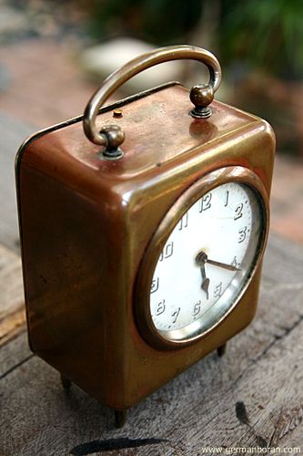 รหัส: C4_25 ข้อมูล: นาฬิกาปลุกไขลานเยอรมันโบราณ(German Antique Alarm Clock) ยี่ห้อ Junghans รุ่นปี 192x-3x หน้าปัดขนาด 10x10cm. เรือนใหญ่หนาหนัก ตัวเรือนทองแดงแก๋งแข่ง คลาสสิคมากๆ ครับ  ;D