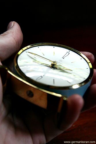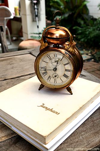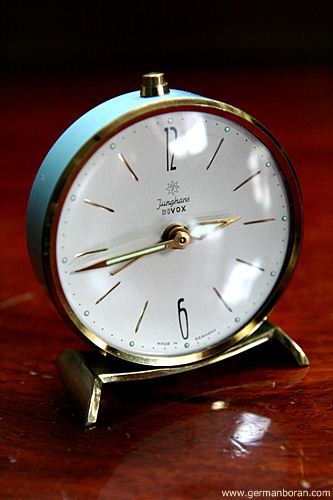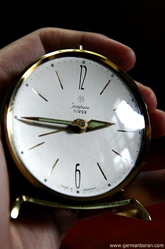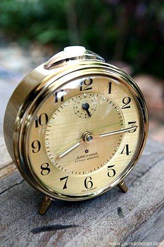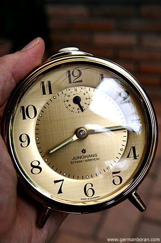 รหัส: C5_8 ข้อมูล: นาฬิกาปลุกไขลานเยอรมันโบราณ ยี่ห้อ Junghans รุ่น Trivox Silent-Tic ขนาด 9x9cm. ปลุกเป็นเสต็ป(Trivox) แถมเดินเงียบ(Silent-Tic) หน้าปัดสวยๆ ทองๆ สภาพกริ๊บๆ สมควรเก็บเป็นอย่างยิ่งครับ อิอิ ;D