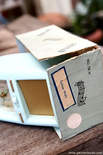 รหัส: C5_95_1 ข้อมูล: นาฬิกาปลุกไขลานเยอรมันโบราณ ขนาด 13x7cm. ปลุกเป็นเสียงดนตรีทำนองตามระบุไว้ที่ฝากล่อง "Cuckoo Waltz" สภาพกริ๊บๆ แบบเก่าเก็บ น่าสะสมมากๆ ครับ  ;D
