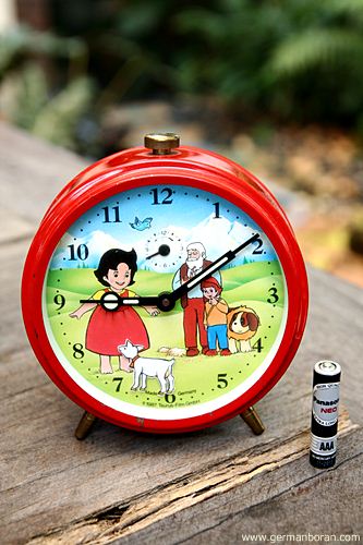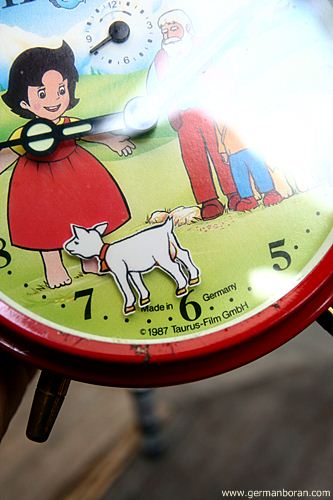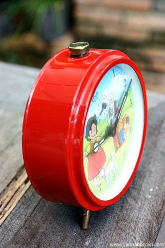 รหัส: C6_0_6 ข้อมูล: นาฬิกาปลุกไขลานเยอรมันโบราณ ขนาด 9x9cm. หน้าปัดลายการ์ตูนดังยุค 70's-80's "Heidi, Girl of the Alps" หัวแกะกระดุ๊กกระดิ๊กได้ หายากน่าสะสมมากๆ ครับ  ;D