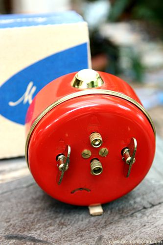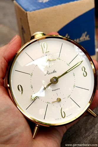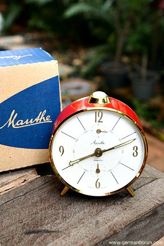 รหัส: C6_25 ข้อมูล: นาฬิกาปลุกไขลานเยอรมันโบราณ(German Alarm Clock) ยี่ห้อ Mauthe รุ่น Repeto ขนาด 9x9cm. สภาพเก่าเก็บ พร้อมกล่องแต๊ๆ สวย กริ๊บ เท่ห์ คลาสสิคครับ ^o^