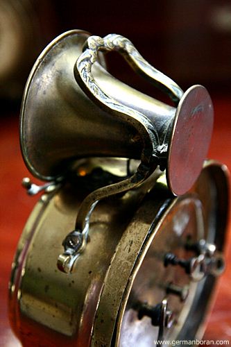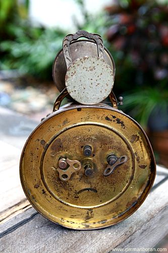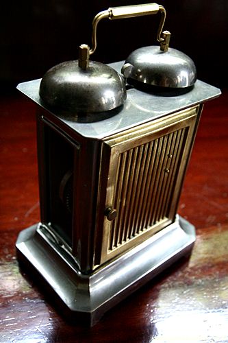 รหัส: B5_6 ข้อมูล: นาฬิกาปลุกไขลานโบราณ สุดยอดนาฬิกาปลุกจากแดนน้ำหอม ขอเป็นพระเอกในหัวใจเธอ ยุคก่อนปี 1900 ยี่ห้อ Japy Freres ณ Beaucourt สภาพกริ๊บๆ มีรอยเชื่อมนิ๊ดเดียวที่ขาถีบจักรกรอกครับ ตัวเรือนขนาด 11x21cm. ฝาหลังเป็นภาษาฝรั่งเศส มีช่องมองเครื่องทำงานแสนคลาสสิคมองไปข้างในจะเห็นโลโก้สุดสวย เรือนนี้ผมหวงมากๆ แต่ช่วงนี้ผมกำลังรวบรวมกะตังเป็นค่าสินสอดอยู่คร้าบบเลยต้องตัดใจแบ่งครับ  :-*