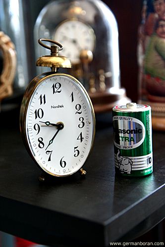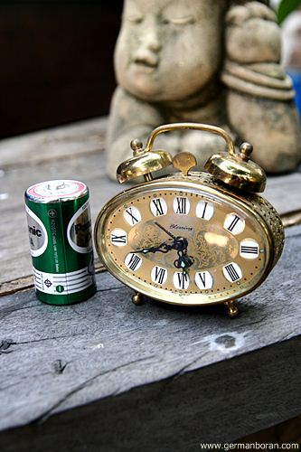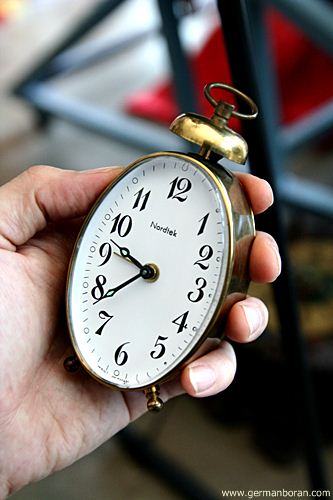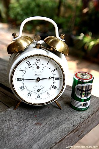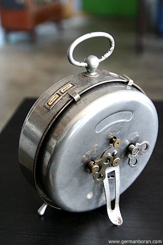 รหัส: C9_68_1 ข้อมูล: นาฬิกาปลุกไขลานเยอรมันโบราณ(German Alarm Clock) ยี่ห้อ Nordtek(West Germany) ขนาด 5.5x8.5cm. ทรงวงรีตั้ง ตีกระดิ่งบน น่ารักๆ ครับ 8)