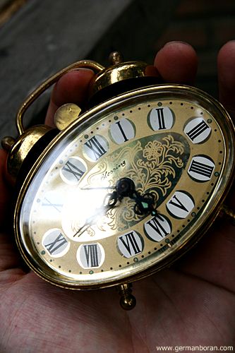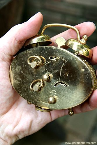 รหัส: C9_0_4 ข้อมูล: นาฬิกาปลุกไขลานเยอรมันโบราณ ยี่ห้อ Mauthe