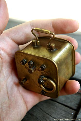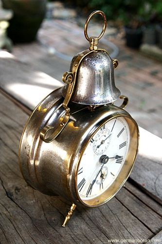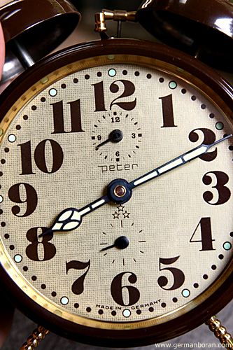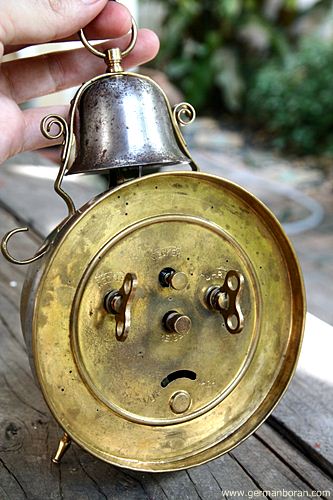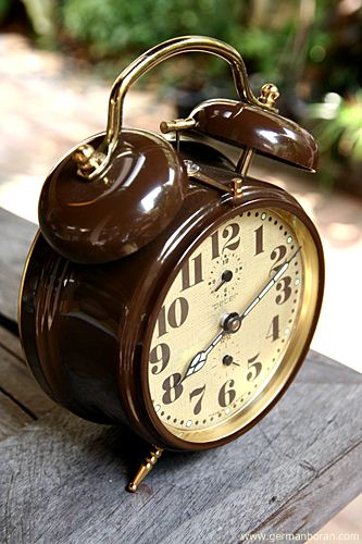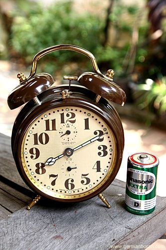 รหัส: C9_68_2 ข้อมูล: นาฬิกาปลุกเยอรมันโบราณ แบบไขลาน ยี่ห้อ Peter สามดาว สองกระดิ่ง ตัวเรือนคลาสสิคสีน้ำตาล หน้าปัดทองจ๋วยๆ สภาพกริ๊บๆ น่าสะสมจ้ะ  ;D