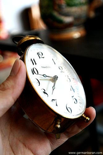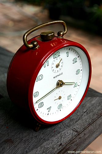 รหัส: C9_68_4 ข้อมูล: นาฬิกาปลุกเยอรมันโบราณ แบบไขลาน ยี่ห้อ Kienzle สวยๆ จ้า  ;D